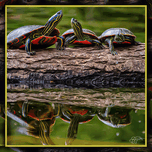 Get this artwork "PAINTED TURTLES SUNNING" in a framed print.