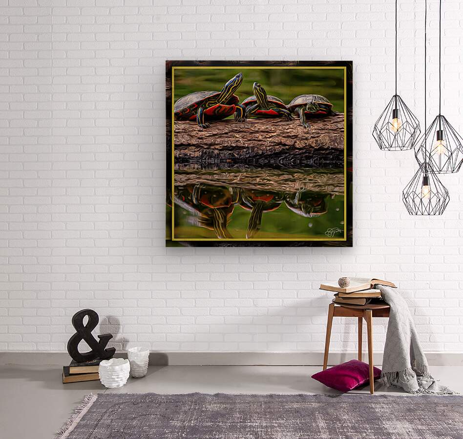 PAINTED TURTLES SUNNING  Wood print